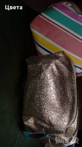 Красиви козметични чатички два броя розовозлатисти и 1. брой с ярки тонове шарки.Производство Англия. Цената е за един брой.