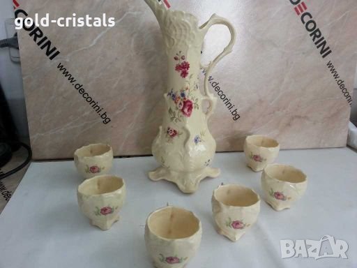 Стар италиански бароков сервиз тип капидомонте много фин и лек като перце висока кана и 6бр чашки комплект сет лот ретро арт декор винтидж колекция стари старинни антикварни предмети обзавеждане за дома и семейството подходящи за подарък за ценители и колекционери