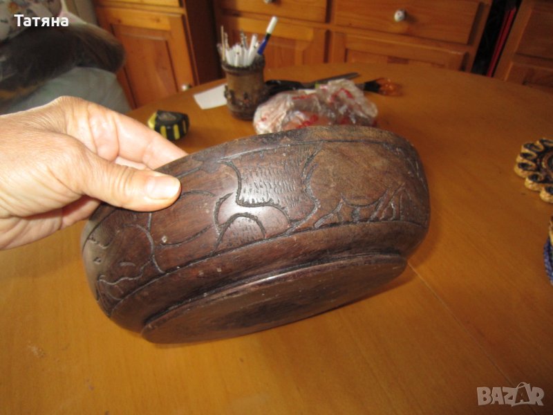 СНИМКИ 1-5;диаметър 27 и височина 7см КУПАТА ОТ ТИКОВО ДЪРВО ; 40 € ;