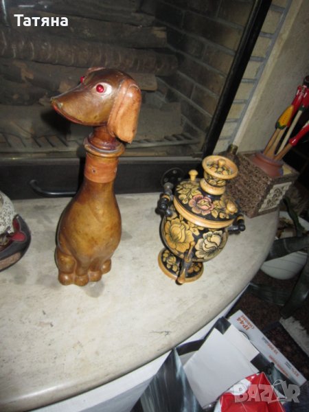СУВЕНИРИ купа от ТИКОВО ДЪРВО ; СТАР РУСКИ САМОВАР;КОЖЕНО ШИШЕ - КУЧЕ