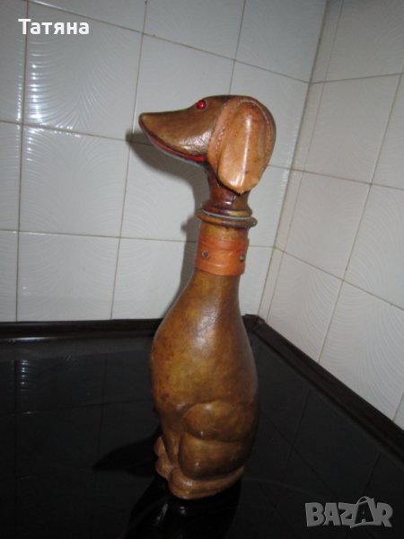 СНИМКИ 16-18 КУЧЕ -височина -38см.Цена -60 € ;бутилка за алкохол ОТ СТЪКЛО ,РЪЧНО ДЕКОРИРАНА С ЕСТЕВЕНА КОЖА. ГЕРМАНИЯ;СТАРА ИЗРАБОТКА;