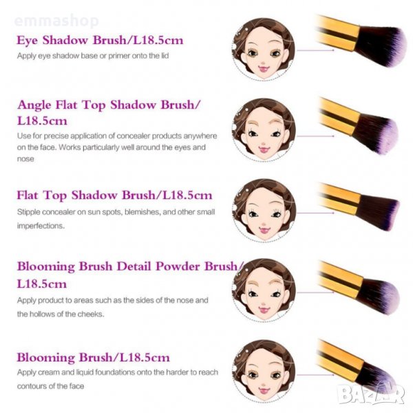 за нанасяне на всички видове течни, кремообразни и сухи пудри и продукти.