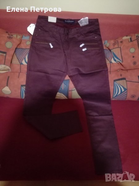 Нови промазани дънки в бордо размер 36 → Обява 28695310