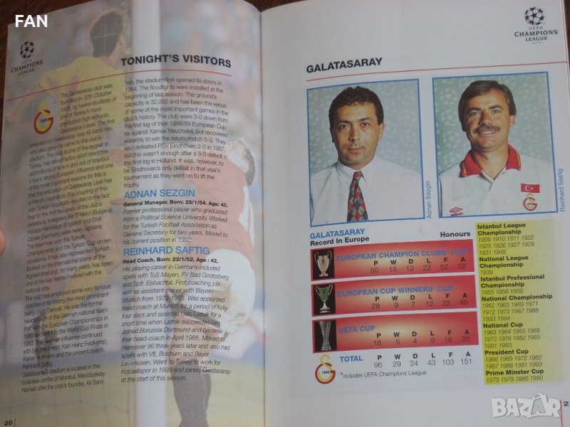 Манчестър Юнайтед - Галатасарай Истанбул оригинална футболна програма Шампионска лига 1994/95