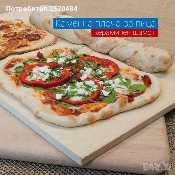 Керамична плоча с размер 63.5х43см, за печене на пица, пърленки, хляб, сладкиши и други тестени изделия.
