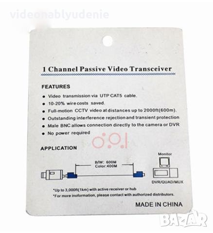 Комплект от 2 броя Video Balun Пасивен Видео Балун Преобразувател 400-600 Метра по UTP CAT5 Кабел