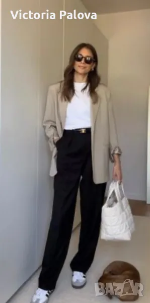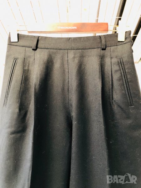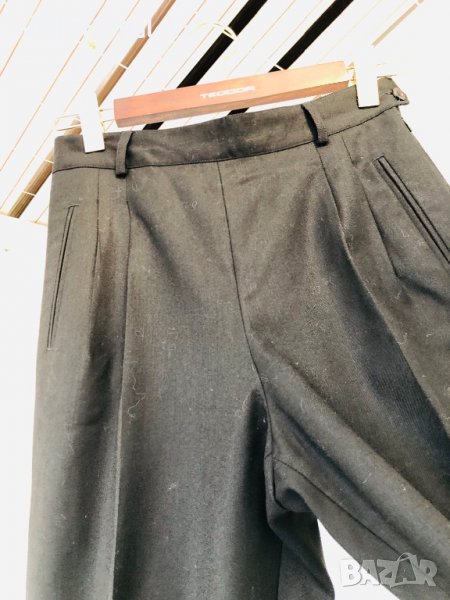 Супер красив класически модерен панталон,състав:95%тънка качествена гладка вълна и 5% ликра за разтегливост и форма.крачолът е прав с малки цепки,дълъг е 99см от колана и 68см от чатала.висока талия (37-38см),странично закопчаване.ханш-52-53см.кройката на панталона е идеална,особено важно отзад на кръста - 4 защипа.