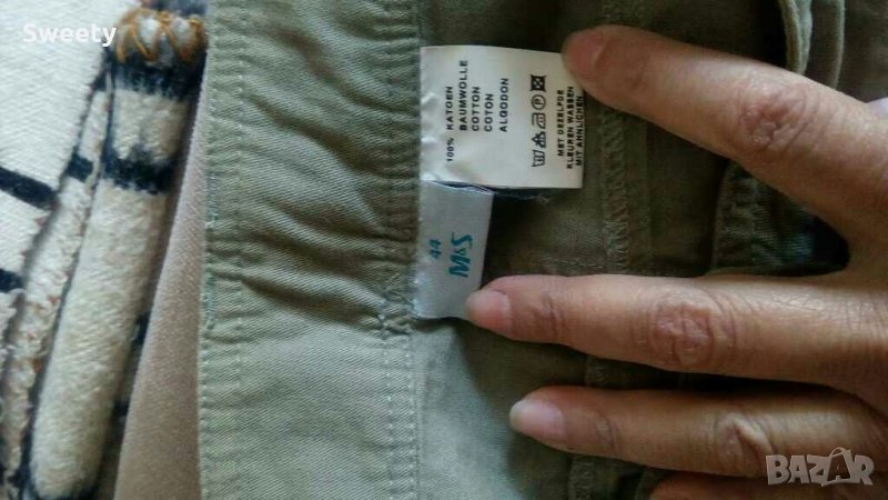 Зелен дамски панталон три четвърт, напълно запазен, материя памук, по европейска номерация 44, обиколка на талията 94 см, обиколка на ханша 116 см, обиколка на бедрото 66 см, обиколка при коляното 54 см, дълбочина 30 см, обща дължина 84 см