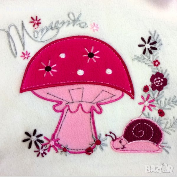 симпатична бродирана апликация с охлювче и гъбка