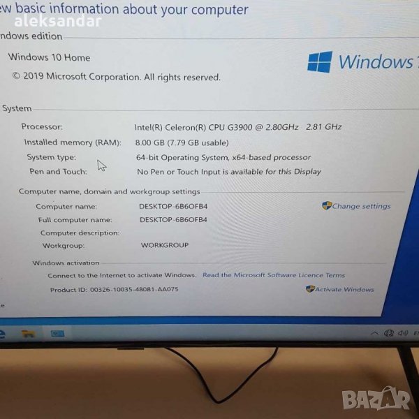 Ком.работи перфектно рам.8GBddr4.процесор.G3900