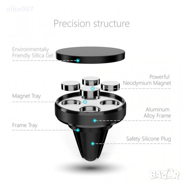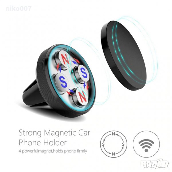 -Подсилен магнит, гарантиращ за това, че телефонът ще бъде стабилно прикрепен дори при остри завои и неравности по пътя.