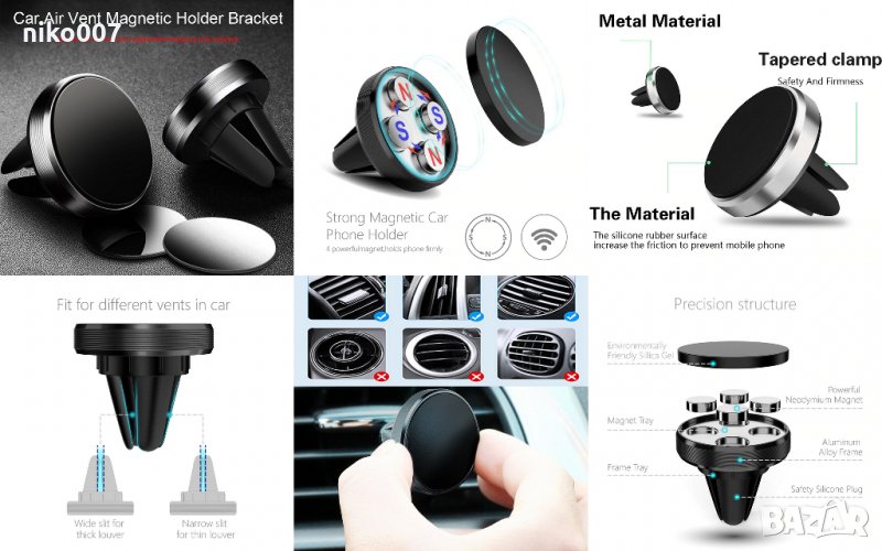 Универсална и много стилна магнитна стойка за мобилен телефон, смартфон или таблет за автомобил.