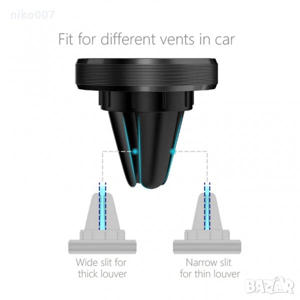 -Лесен монтаж вентилационните отвори, благодарение на щипката с гумирани крачета.Монтира се към вентилационната решетка на таблото на автомобила