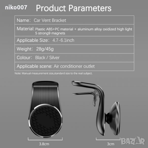 -Подсилен магнит, гарантиращ за това, че телефонът ще бъде стабилно прикрепен дори при остри завои и неравности по пътя.