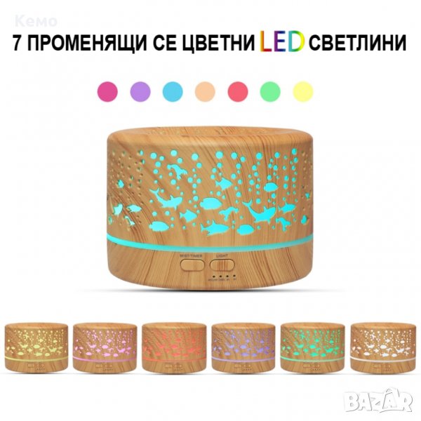 Красив и компактен ултразвуков арома дифузер за етерични масла с променящи се 7 лед светлини.