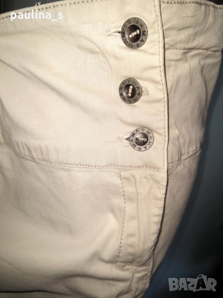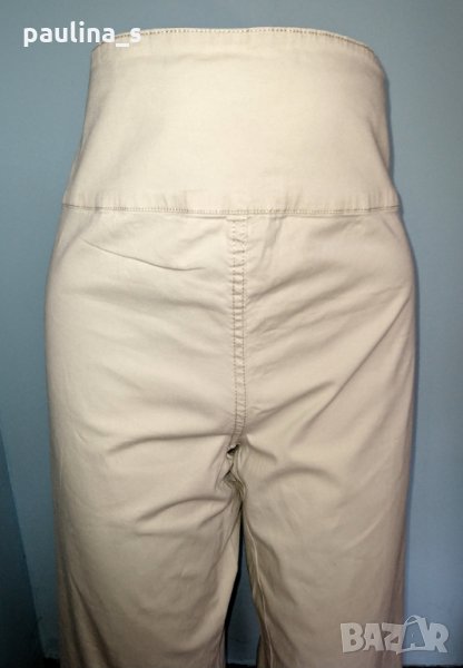Дънкови бермуди за бременност. Платката отпред е двойна и заоблена. Талията се регулира с ластик и копчета отзад, закопчаването е в страни. Материята е памук и ликра, много еластична и покрива няколко размера, но за напреднала бременност над 5 месец.