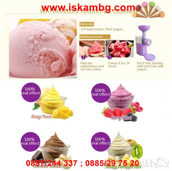 Вече с радост ще давате на децата си да хапват сладолед, защото с помощта на този уред, той ще е 100% натурален и здравословен. Нужно е само да изберете от какви плодове ще го направите, да ги замразите за не по-малко от 12 часа във фризер или камера, след което да ги поставите в отвора на уреда, да натиснетe копчето и хоп - отдолу излиза замръзнал десерт под формата на сладолед от машина. Така няма да се налага да влизате в излишни спорове с децата за това, че трябва да избягват сладоледа и да залагат на повече пресни и полезни плодове. Освен за тях, вкусният десерт ще е чудесно предложение за разхлаждане и за възрастните през топлите месеци.