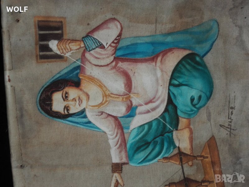 Продавам видна на снимките тая много стара картина.колекционерска рисувана върху платно с маслено бои авторска опъната върху фазер,картината изобразява жена работеща на вретено,има щети но е уникално красива,идеална за колекционери как е докарана от германия не е пипана в оригиналния вид размери 56см на 41см,само за ценители.Моля разгледайте и другите ми обяви!