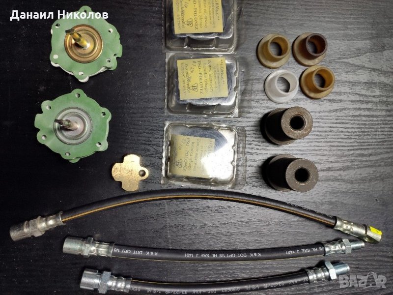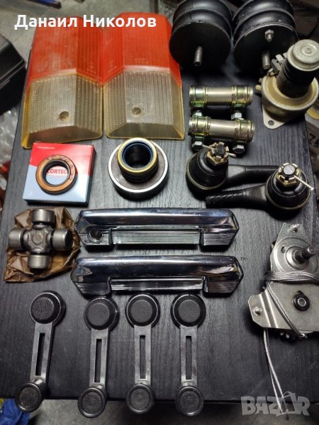 За актуална наличност 0878 115 499 от понеделник до петък от 10-17ч Рем,комплект заден спир.апарат-10лв/бр. Платно бенз.помпа полско Фиат-18лв/бр Маркуч спир.преден-15лв/заден-15лв/маркуч съединител-15лв Тройник спирачки-20лв Кабели за свещи Тесла-продадени. Накладки предни20лв/задни-20лв Рефлектори къси Н4,Дълги Н1 руски к-кт 4бр-115лв Гарнитура карбуратор -5лв Игла карбуратор руска ДААЗ-10лв/бр Свещи полски искра к-кт 4бр-про Помпа крачна чистачки-20лв Муфа съединителна кормилни накр.15лв/бр Накрайници къси к-кт 2бр+гайки и шплентове Krosno -50лв. Семеринги скоростна кутия предна+задна-15лв Лагер+втулка+семеринг за полуоска-30лв Каре кардан руско усилено-20лв Дръжка външна хром руски предна дясна-45лв/задна дясна-35лв Дръжки стъклоповдигач метални+зегерките +болтчета /Стават за Москвич и Ваз/к-кт 4бр-30лв Стъклоповдигач преден-20лв/заден 15лв Спирачна помпа LPR -55лв Бендигс Фиат 125 полски-30лв Датчик перка92-87 градуса-18лв Муфа синхронизатор-48лв Синхронизатори 22лв/бр Феродов диск руски Лада 1600/Нива /Фиат-50лв Феродов диск Полски -60лв Маслен филтър Фиат 125Р полски-24лв Въздушен филтър ВАЗ/Фиат с киче полски-10лв Стъкла фар комплект 4 бр/2къси+2дълги/руски -25лв. Втулки носач къса 5лв/ дълга5лв