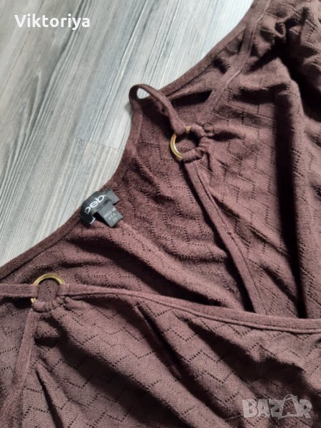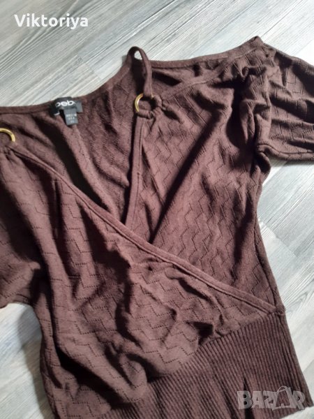Блузата е оригинална, купена от магазин BEBE в Америка. Много е интересна и стилна. С голи рамене, Със златни халки на раменете, три четвъртен ръкав, голямо деколте и прилепната на кръста.