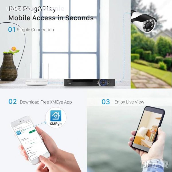 ➤ Дистанционен преглед от облака или чрез апликацията XMEye от вашият смартфон / таблет.