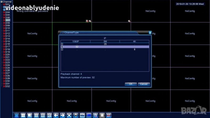 Ресурси на системата: Едновременно многоканално записване в реално време, Възпроизвеждане, Работа в мрежа, USB архивиране