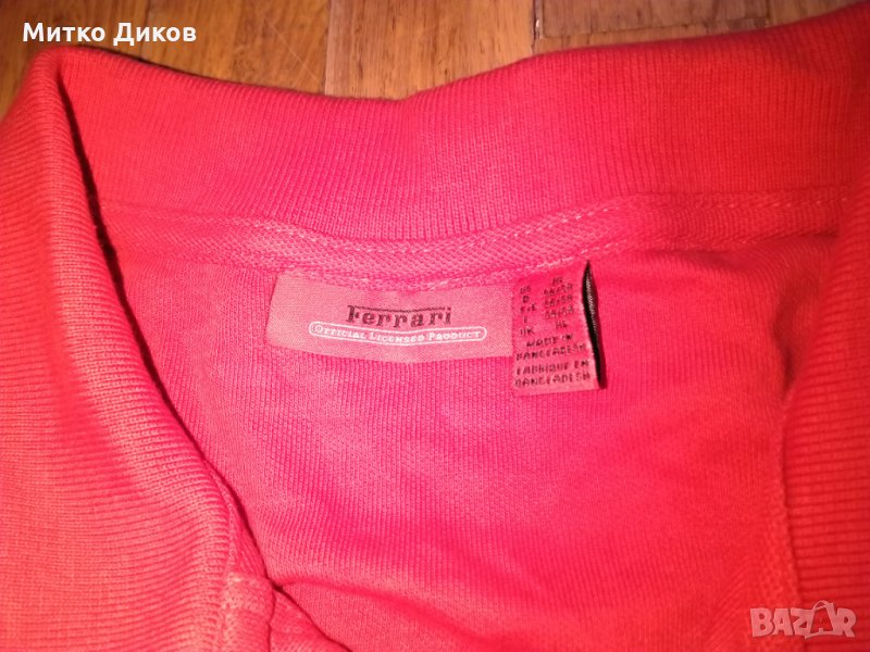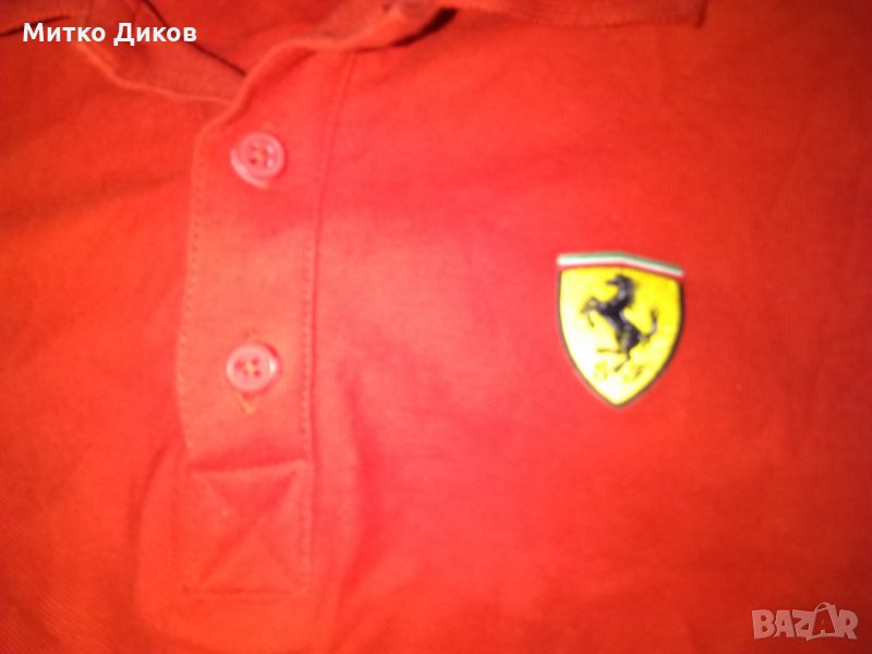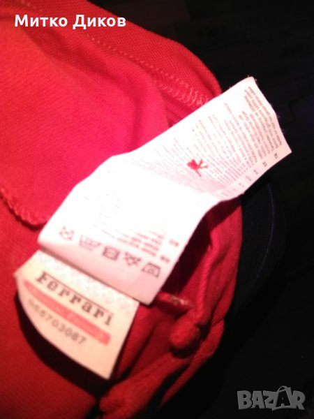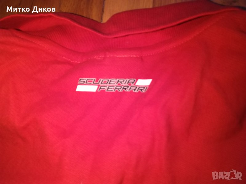 Ферари тениска официална 100% памук размер ХЛ-отгоре додолу 75см и подмишници-62см-в много добро състояние-има леко потъмняване отпредпо средата вдясно което може и да падне при пране с Ваниш и затова съм намалил цената-изпращам по еконт с отстъпка