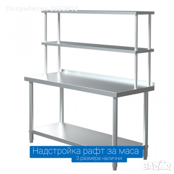 Надстройки за работни маси на две нива два модела чисто нови. От неръждаема стомана.