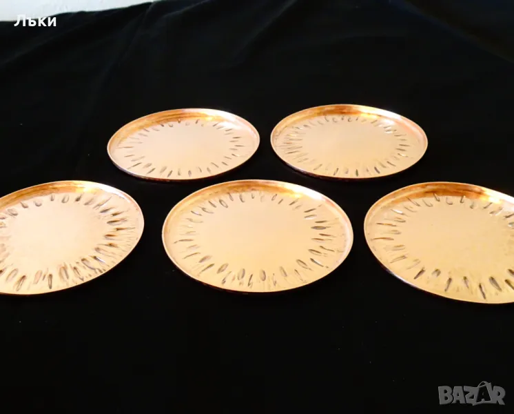 Старинна медна чиния за хапки,подложка за чаша,майсторска