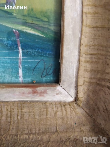 картина-пейзаж.техника-гваш на картон в дървена рамка със стъкло размери 50см/41см,вътрешни 26см/27см..