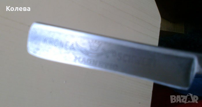 KRONE & SCHWERT Magnetic Емблемата е бръснач, извит леко като ятаган и над вдлъбнатината има коронка. Това е