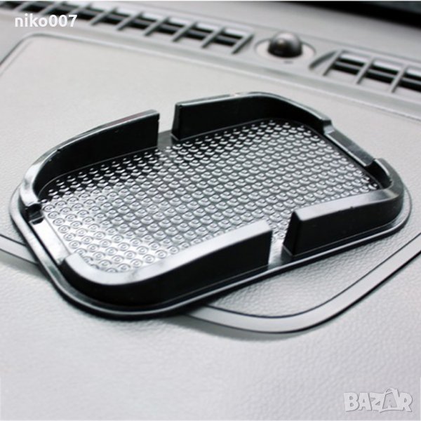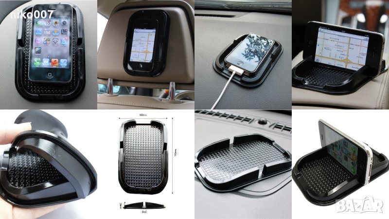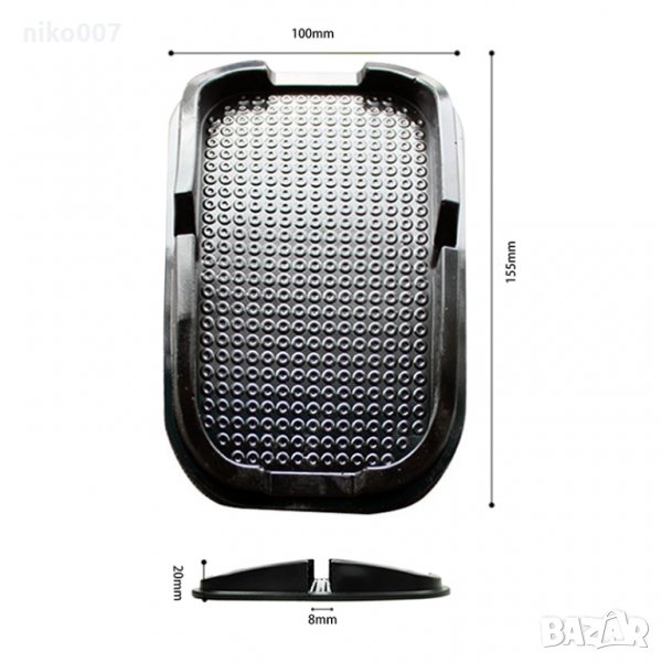 Идеално задържа, без лепило или магнит, Вашите: GSM, GPS, MP3, очила, химикалка и др.Подложка изработена от силиконов материал с двойнолепяща повърхност, със