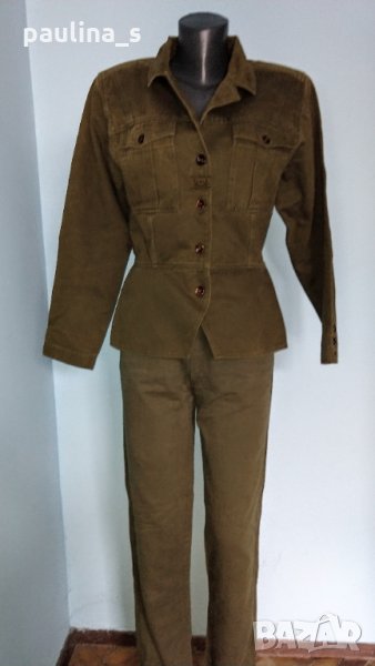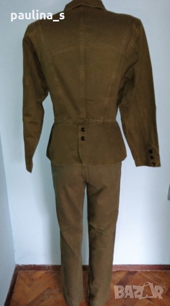 Дънков комплект в цвят Милитъри, не се делят! Якето е вталено, моделът е уникален! Дънките са модел "5 pocket Denim" standard. Платът не е еластичен. Като цяло е перфектна и ефектна комбинация!