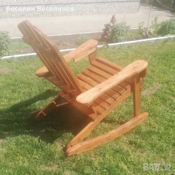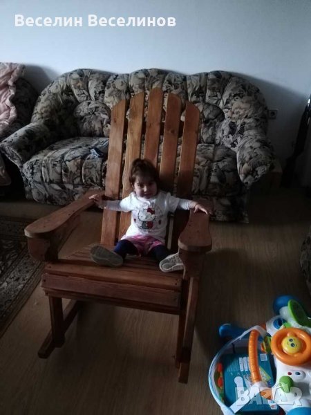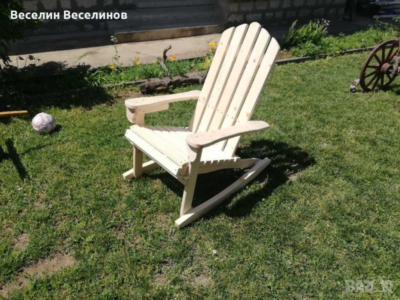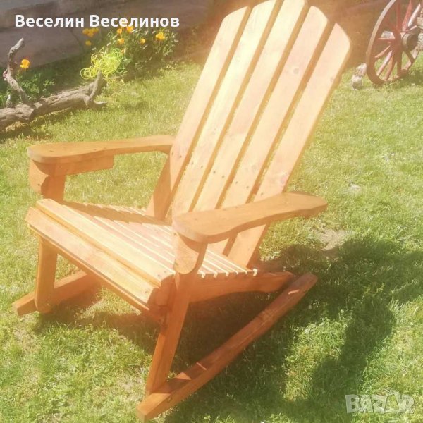 Люлеещ стол от масивна иглолистна дървесина с дебелина 2.5 см. Седалката на столчето е широка и дълбока по 55 см. Облегалката от седалката е на височина 90 см. Не е пестено от видий и болтове с цел гарантирано здрава конструкция. Най долната част на стола, която люлее е направена от 4.5 см дебела дъска. Цената е 180 лева за нелакирано и 200 за лакирано столче.