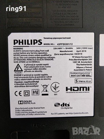 T-Con - 6870C-0532A TV Philips 43PFS5301/12 → Обява 28772292