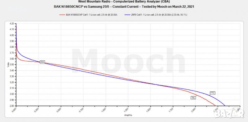 Съпоставима с Samsung SDI INR18650-29E, Panasonic NCR18500, Murata NC1, LG MF1