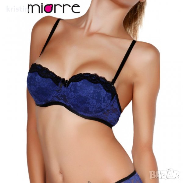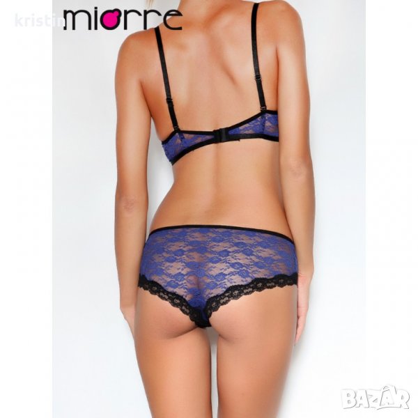 Секси и удобно бельо в син цвят. Дантела, която подчертава нежността на дамите. Сутиенът е с твърда чашка. Води се бриджит.