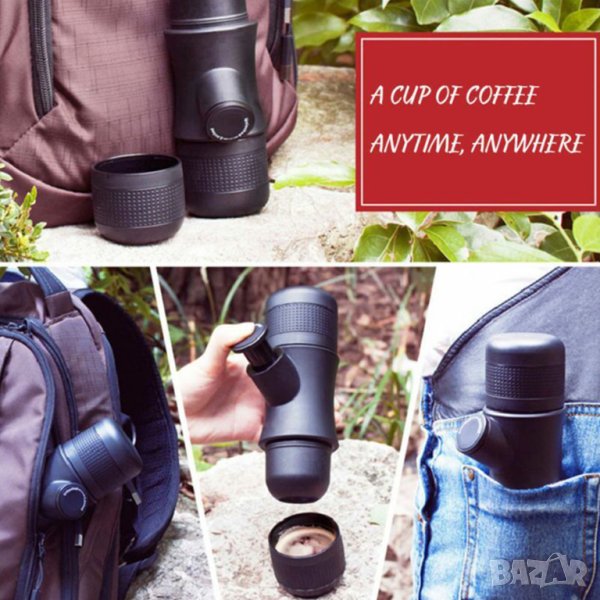 Топ най-добра цена, високо качество! Еспресо ръчна кафе машина ( кофимейкър ). За планината, плажа, гората, фитнеса, екскурзията.