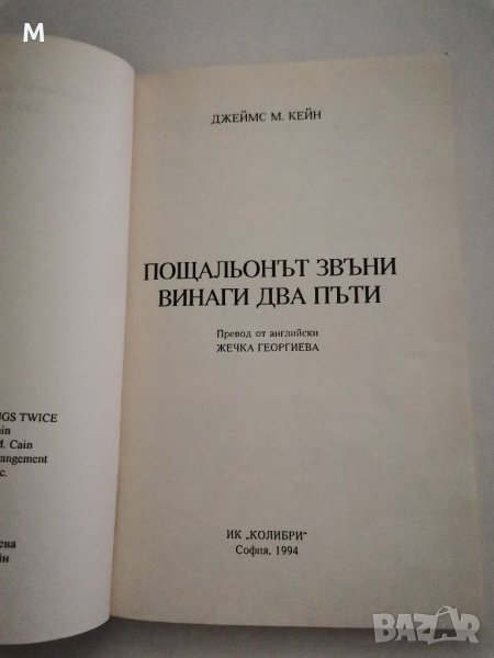 Пощальонът звъни винаги два пъти,Джеймс М. Кейн → Обява 28786990