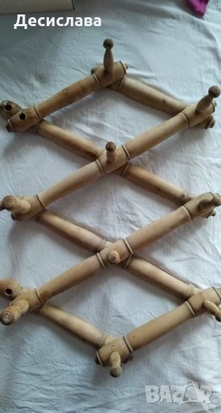 Дървена ретро закачалка за стена .Подходяща за употреба или реквизит.Размери-височина 47 ,дължина сгъната 16, дължина разгъната 75