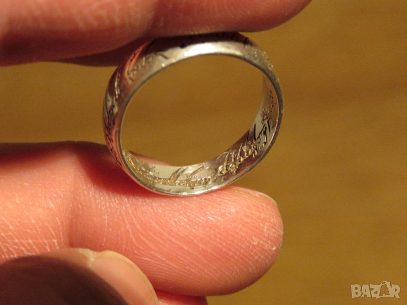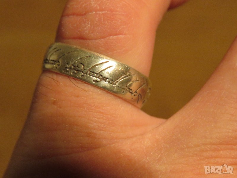 Старинен сребърен пръстен - Властелинът на пръстените с гравирано елфско слово - уникален модел - Стар Внос от Щатите.