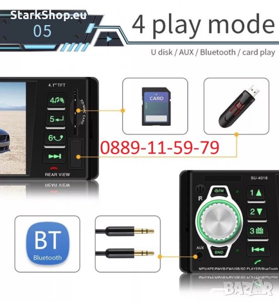Нов модел, качествена мултимедия Mp3 / Mp4 / Mp5 Car Player – възпроизвежда на дисплея видео клипове, филми и музика. Използва се и като handsfree за лесно провеждане на разговори