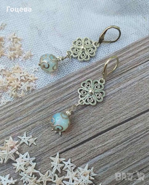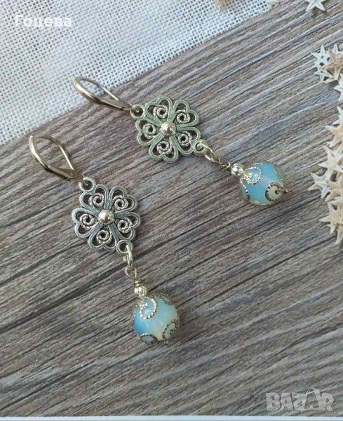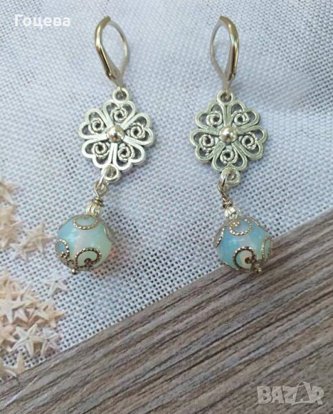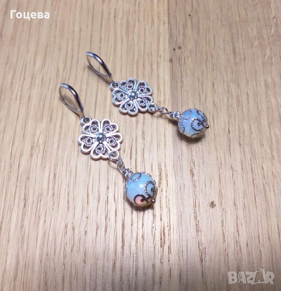 камък Опал и филигранни цветя и обков в цвят антично сребро от новата ни колекция ! ⚜️Прекрасни Викториански обеци със скъпоценен камък Опал и филигранни цветя и обков в цвят антично сребро от новата ни колекция ! ⚜️⚜️⚜️Много нежни обеци, с красотата на Опала обкован във фини филигранни орнаменти и нежно цвете в Античен стил. Има и богато колие от същата серия, ако желаете да си направите красив комплект.❤️Дължина на обеците с кукичките - 5.2 см.Без кукичките - 4.2 см.Цена на обеците - 25 лв.