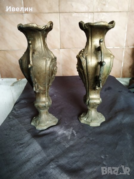 две барокови вази за декорация от метал.високи са по 24см.цената е заа двете.внос от франция.