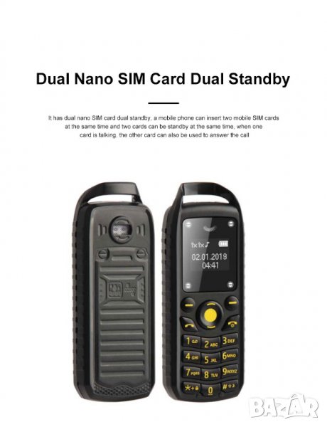 - запис на разговори- В с място за връзка, за врата или китката.- С две сим карти!!! Работи с всички оператори!