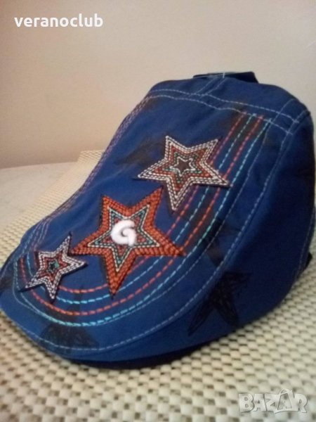 Детски памучен каскет с размер 50 см. Шапката отзад е с ластик. Размерът може да се регулира от двете страни на шапката. Шапката е с избродирани красиви звездици. Интересен и удобен летен модел за момченца.