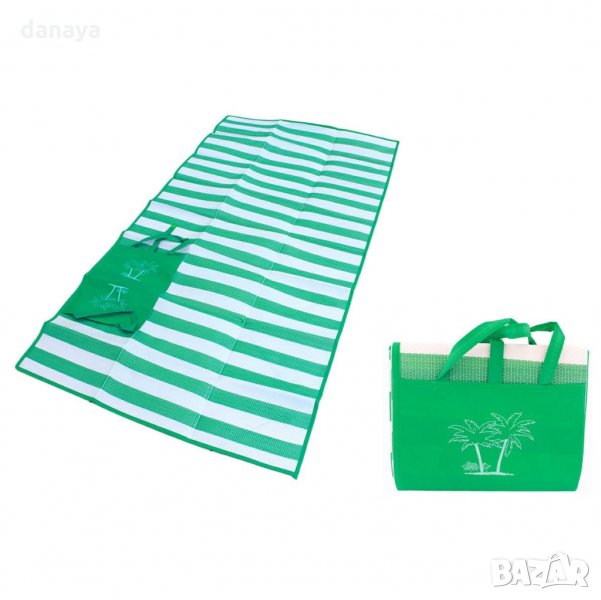 рогозка за плаж, пикник или къмпинг, изработена от найлонови сламки. Рогозката е сгъваема и лесно преносима, тъй като се превръща в чанта с дръжки, когато я сгънете. Налична в три цвята. Постелката за плаж е изработена от меки найлонови сламки, осигуряващи мекота и комфорт при използване. Не задържа вода върху себе си.