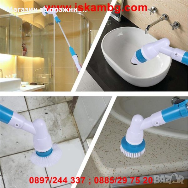 Използвайте четките по предназначение и ще се уверите как мръсотията в банята ви казва сбогом. Освен това, с включения удължител ще останете чисти и сухи, както и ще достигнете зад тоалетната и труднодостъпните места без да се налага да се врете и сгъвате.