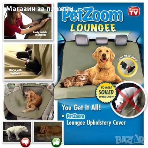 PetZoom Loungee е най-разумната защита за задната автомобилна седалка от косми на домашни любимци, мръсотия, кал, драскотини от нокти и всякакви щети по тапицерията на автомобила! Произведена от водоустойчив, специален материал, който може да се пере в пералня. Постелката Pet Zoom Loungee се слага за секунди, а след употреба се сгъва лесно. Съвместима с всички видове автомобили! Край на замърсените, миризливи седалки! Вашият домашен любимец ще се чувства комфортно, а автомобила Ви ще е безупречно чист!