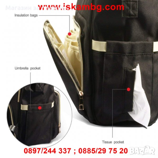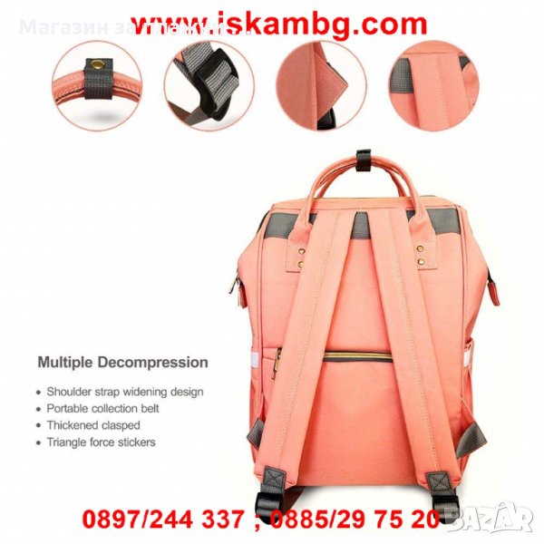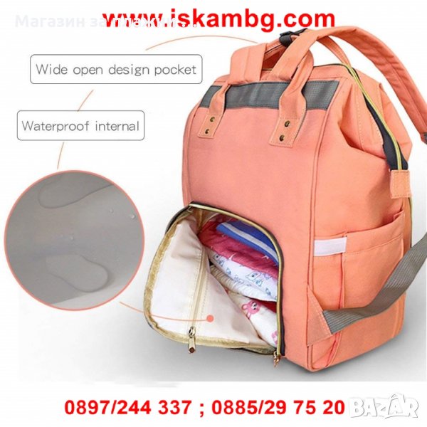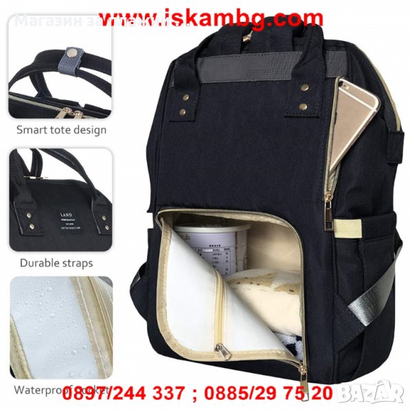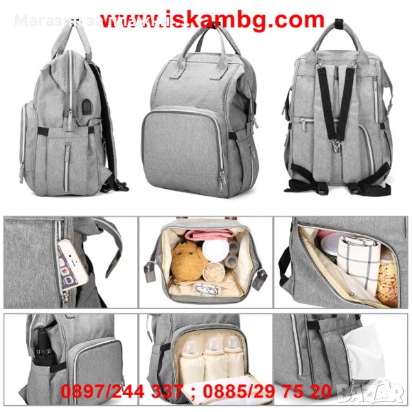 ЧАНТА ЗА БЕБЕШКИ ПРИНАДЛЕЖНОСТИ МНОГОФУНКЦИОНАЛНА С ГАРАНЦИЯ ЗА ПРОИЗХОД